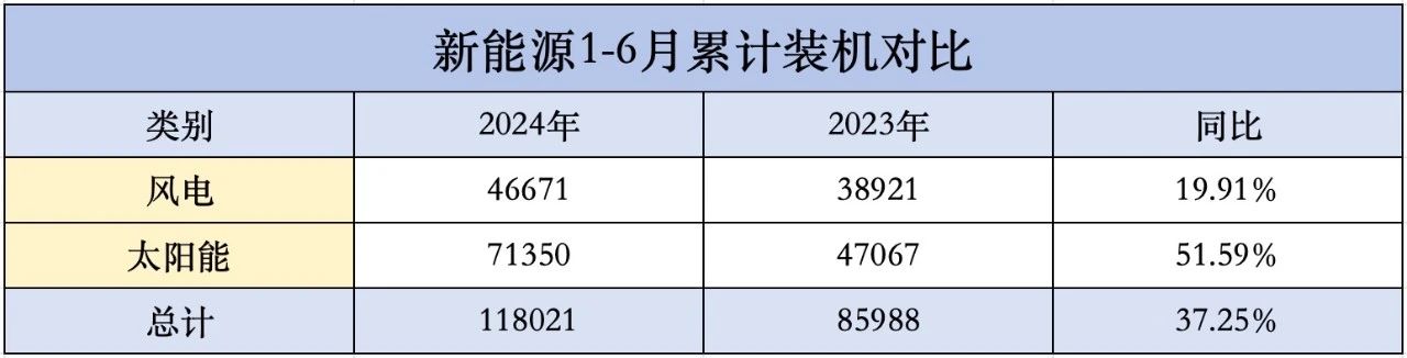 1-6月,全國新增發(fā)電裝機容量1.5億千瓦,同比增長1878萬千瓦。其中,太陽能發(fā)電新增裝機容量1.0億千瓦(即102.48GW),同比增長2406萬千瓦,同比增長率為30.68%;風電新增裝機容量2584萬千瓦,同比增長285萬千瓦。