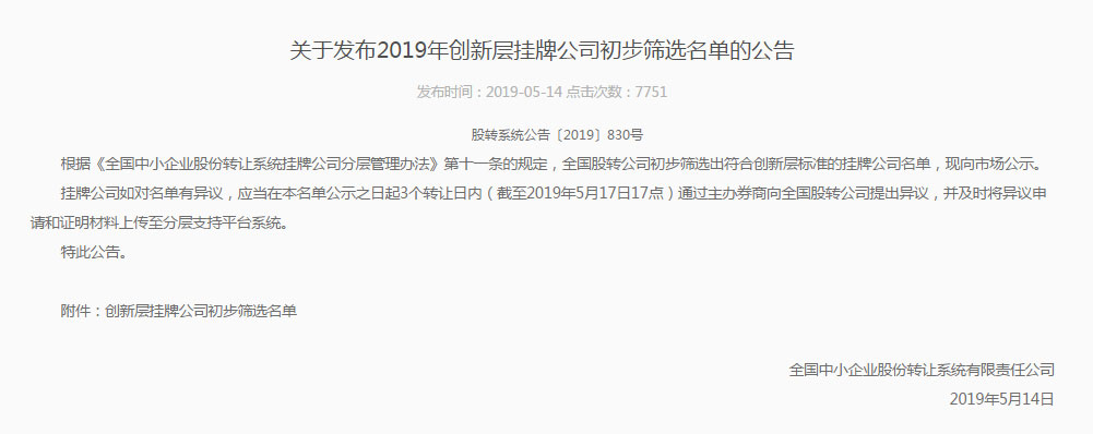 2019年新三板分層調(diào)整拉開帷幕,經(jīng)全國股轉(zhuǎn)公司初步篩選,691家掛牌公司入圍創(chuàng)新層初篩名單。