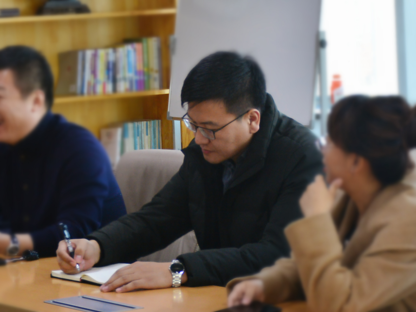 精通世創(chuàng)市場(chǎng)總監(jiān)孫志洋認(rèn)真記錄開(kāi)發(fā)區(qū)領(lǐng)導(dǎo)的建議